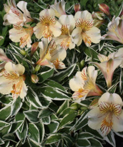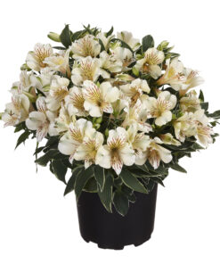 Alstroemeria Fabiana, czyli alstremeria złocista o bardzo eleganckim wyglądzie, to kompaktowa odmiana z serii Colorita®, ceniona za jasne, kremowobiałe do kości słoniowej kwiaty oraz dekoracyjne, pstre liście 🌿 Royal Van Zanten podaje dla niej wysokość około 25–35 cm, duże kwiaty i przynależność do kolekcji Colorita®, a dodatkowe opisy handlowe wskazują na biało-kremowe kwiaty oraz liście z jasnym obrzeżeniem.