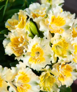 Alstroemeria Yentl, czyli alstremeria złocista o wyjątkowo subtelnej kolorystyce, to kompaktowa odmiana z serii Colorita®, ceniona za jasne kwiaty, zwarty pokrój i długą dekoracyjność 🌿 Royal Van Zanten podaje dla tej odmiany kolor white-yellow, wysokość 25–35 cm i wielkość kwiatu 5–6 cm, a Vitroflora opisuje ją jako odmianę kremowobiałą o wzniesionym pokroju.