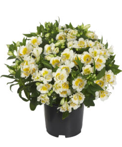 Alstroemeria Yentl, czyli alstremeria złocista o wyjątkowo subtelnej kolorystyce, to kompaktowa odmiana z serii Colorita®, ceniona za jasne kwiaty, zwarty pokrój i długą dekoracyjność 🌿 Royal Van Zanten podaje dla tej odmiany kolor white-yellow, wysokość 25–35 cm i wielkość kwiatu 5–6 cm, a Vitroflora opisuje ją jako odmianę kremowobiałą o wzniesionym pokroju.