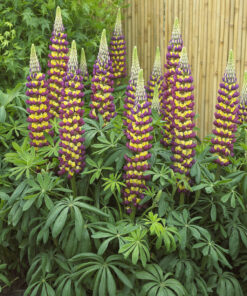 Lupinus Westcountry Manhattan Lights to niezwykle efektowna odmiana łubinu o dużych, strzelistych kwiatostanach w kontrastowym zestawieniu purpurowofioletowych i żółtych tonów 🌿 To bylina o mocnym, pionowym pokroju, która pięknie prezentuje się na rabatach bylinowych, w ogrodach wiejskich i naturalistycznych. Odmiana należy do cenionej serii Westcountry i wyróżnia się silnymi pędami oraz bardzo wyrazistym kwitnieniem.