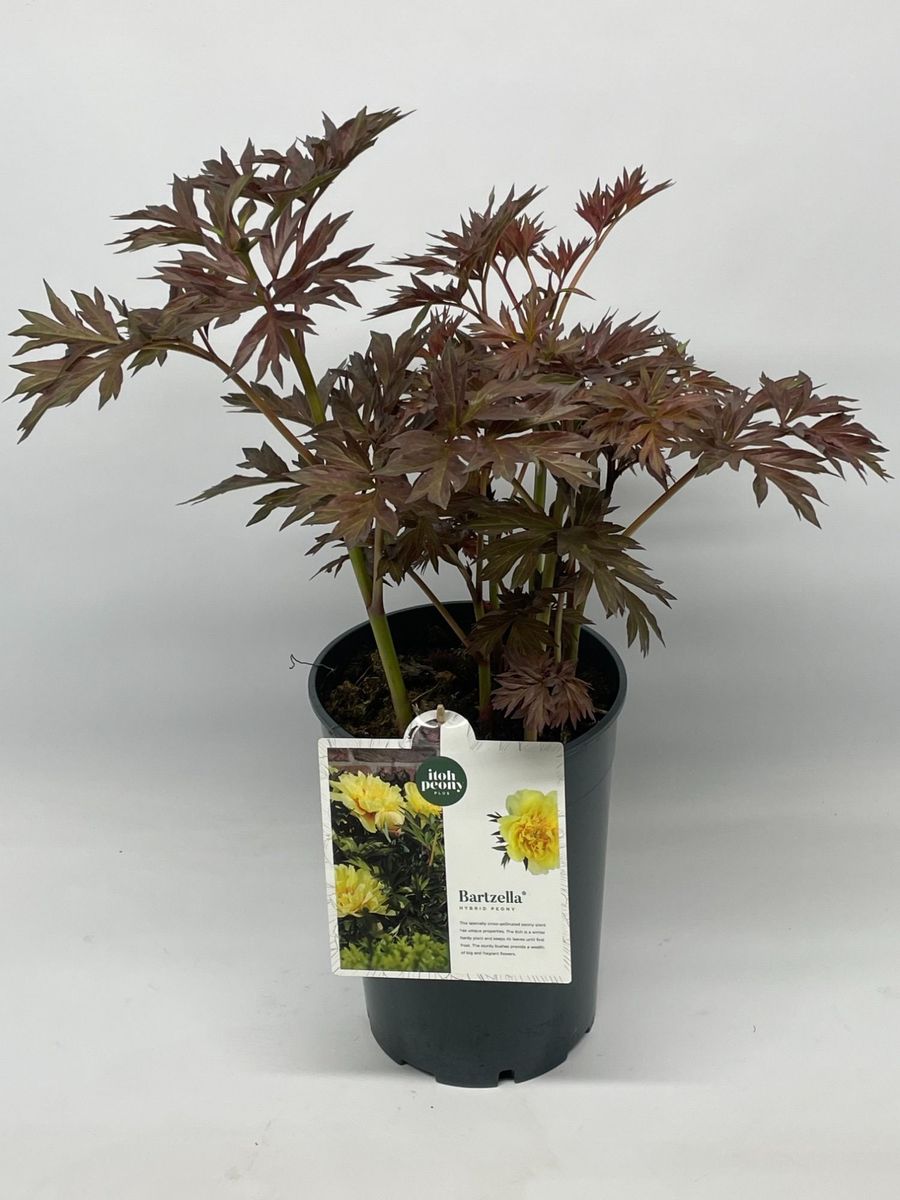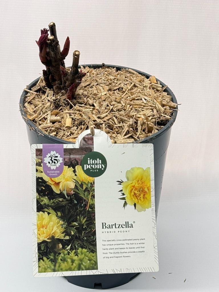 Paeonia Itoh Bartzella to jedna z najbardziej cenionych piwonii z grupy Itoh, zachwycająca dużymi, pełnymi, jasnożółtymi kwiatami z cieplejszym, czerwono-pomarańczowym muśnięciem u nasady płatków 🌿 To odmiana o zwartym, mocnym pokroju, która łączy urodę piwonii drzewiastych z trwałością i wygodą uprawy piwonii bylinowych. Dodatkowym atutem jest delikatny, cytrynowy zapach kwiatów.