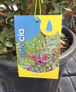 Pistacja to zimozielony krzew lub małe drzewko o drobnych, błyszczących, ciemnozielonych liściach, które przez cały rok zachowują dekoracyjny wygląd. Roślina ma naturalnie gęsty, elegancki pokrój i doskonale wpisuje się w ogrody w stylu śródziemnomorskim oraz nowoczesne kompozycje tarasowe. Dodatkową ozdobą są niewielkie owoce, które pojawiają się na roślinach żeńskich po kwitnieniu – początkowo czerwone, z czasem ciemniejące niemal do czerni.